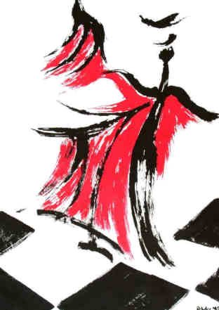 "Red Dancer Chess" - Hand-Siebdruck mit Acrylfarbe übermalt
