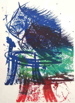 "Springer schlägt Turm" - Hand-Siebdruck von 1992