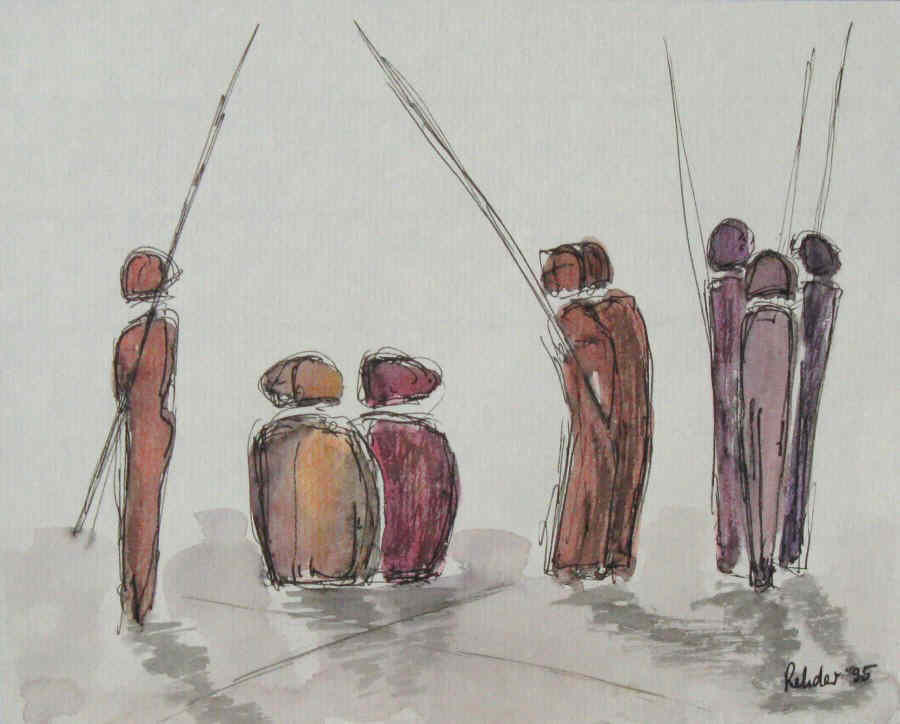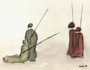 Meine Federzeichnungen zum Schach sind mit Aquarellfarben koloriert. Dies ist